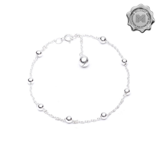 MILLENNE Minimal Ball and Bell Silver Anklet with 925 Sterling Silver