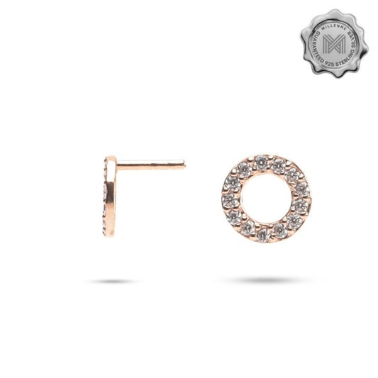MILLENNE Minimal Open Circle Cubic Zirconia Rose Gold Stud Earrings with 925 Sterling Silver