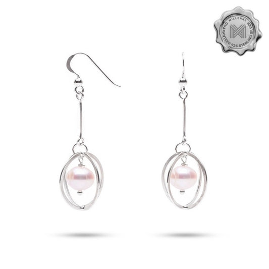 MILLENNE Minimal Freshwater Pearls Silver Beaded Hook Earrings with 925 Sterling Silver