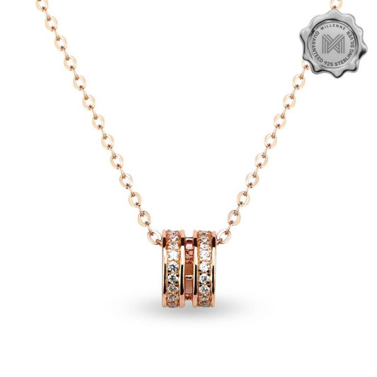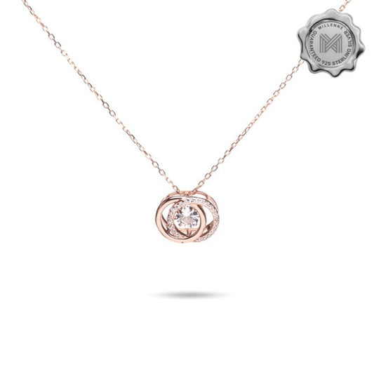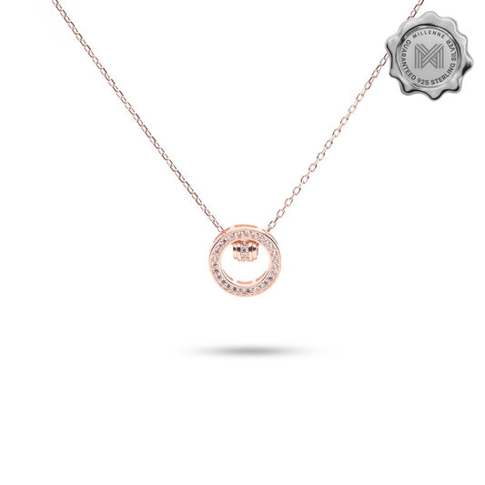 MILLENNE Made For The Night Circle of Life Cubic Zirconia Rose Gold Necklace with 925 Sterling Silver