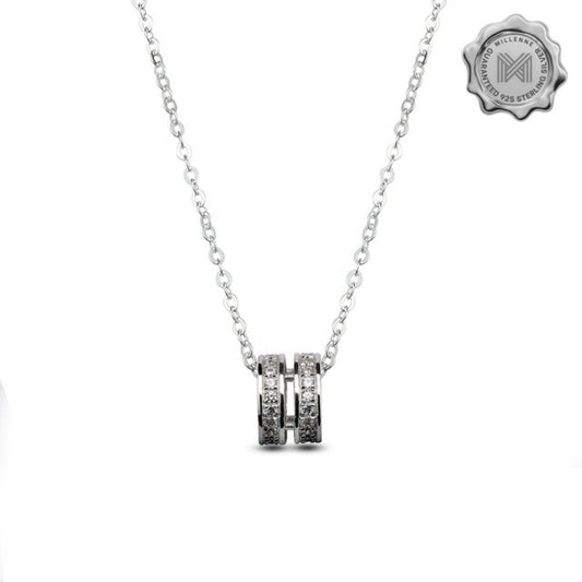 MILLENNE Made For The Night Decorated Circle Cubic Zirconia Rhodium Necklace with 925 Sterling Silver