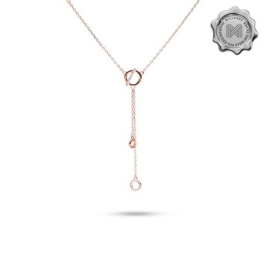 MILLENNE Made For The Night Circle Drop Studded Cubic Zirconia Rose Gold Necklace with 925 Sterling Silver