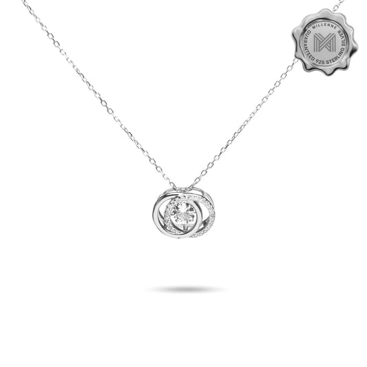 MILLENNE Made For The Night Circle of Life Cubic Zirconia White Gold Necklace with 925 Sterling Silver