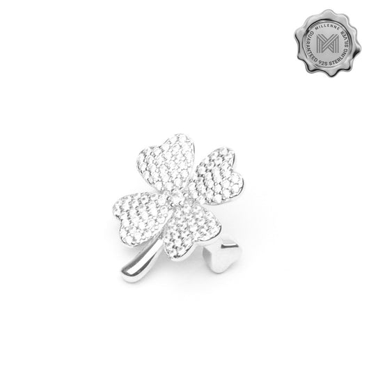 MILLENNE Made For The Night 4 Leaf Clover Cubic Zirconia Silver Brooch with 925 Sterling Silver