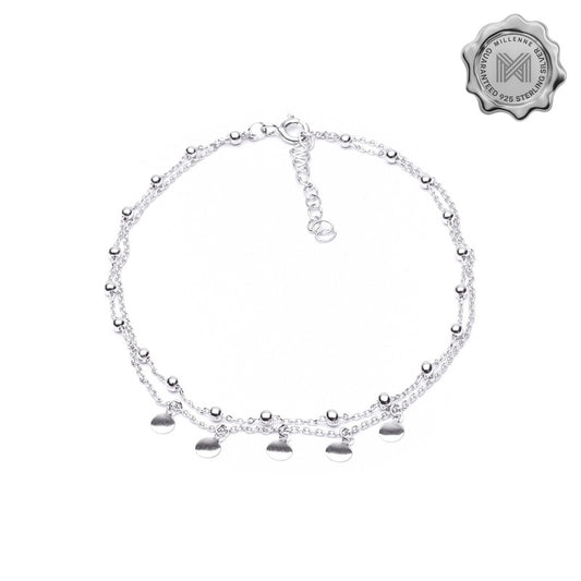 MILLENNE Millennia 2000 Layered Featuring Ball and Circle Dangle Charms Silver Anklet with 925 Sterling Silver