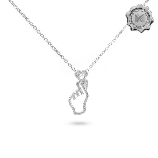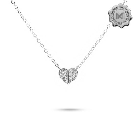 MILLENNE Millennia 2000 Heart Studded Cubic Zirconia Silver Necklace with 925 Sterling Silver