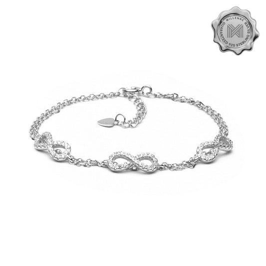 MILLENNE Millennia 2000 Infinity Cubic Zirconia Silver Bracelet with 925 Sterling Silver