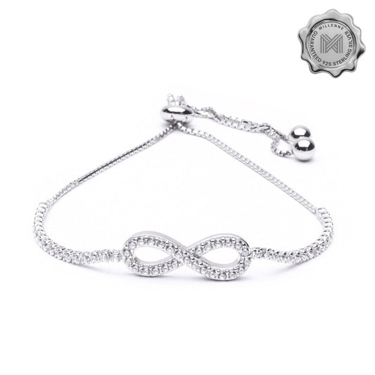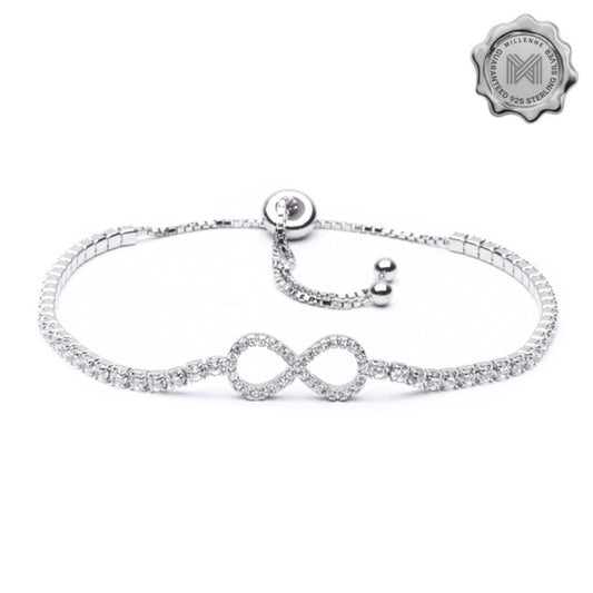 MILLENNE Millennia 2000 Infinity Cubic Zirconia Silver Adjustable Bracelet with 925 Sterling Silver