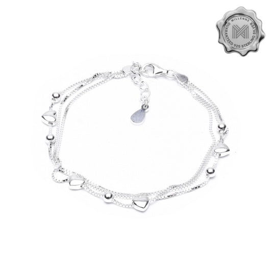 MILLENNE Millennia 2000 Hearts and Beads Double String White Gold Bracelet with 925 Sterling Silver