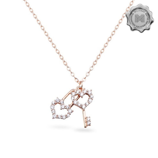 MILLENNE Millennia 2000 Key to my Heart Cubic Zirconia Rose Gold Necklace with 925 Sterling Silver
