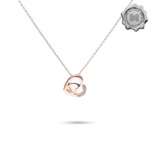 MILLENNE Millennia 2000 Heart Studded Cubic Zirconia Rose Gold Necklace with 925 Sterling Silver