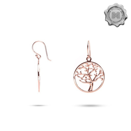 MILLENNE Millennia 2000 Scattered Tree of Life Dangle Rose Gold Hook Earrings with 925 Sterling Silver