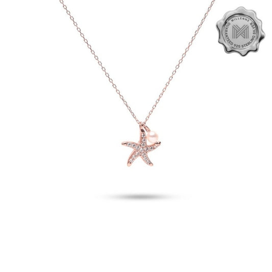 MILLENNE Millennia 2000 Starfish and Pearl Cubic Zirconia Rose Gold Necklace with 925 Sterling Silver