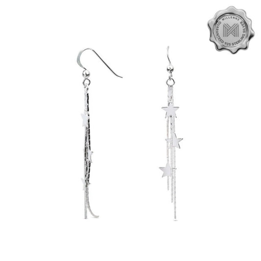 MILLENNE Millennia 2000 Scattered Stars Dangling White Gold Drop Earrings with 925 Sterling Silver