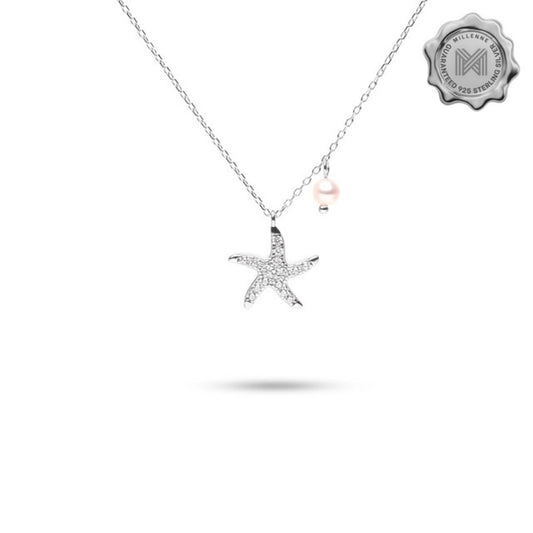 MILLENNE Millennia 2000 Starfish and Pearl Cubic Zirconia Rhodium Necklace with 925 Sterling Silver