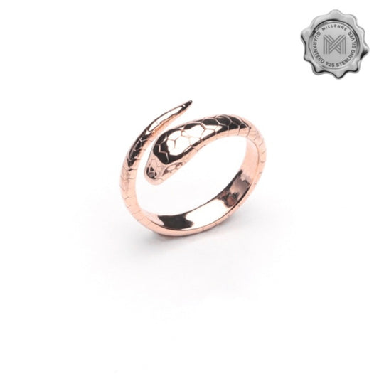 MILLENNE Millennia 2000 Sleek Serpent Rose Gold Adjustable Ring with 925 Sterling Silver