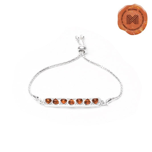 MILLENNE Multifaceted Baltic Amber Bar Drawstring Silver Bracelet with 925 Sterling Silver