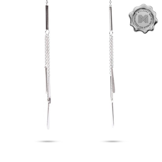 MILLENNE Minimal Thread Dangle Silver Threader Earrings with 925 Sterling Silver