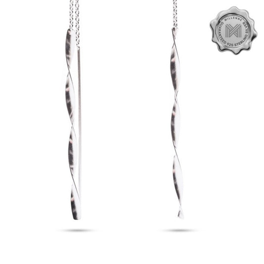 MILLENNE Minimal Twist Spiral Silver Threader Earrings with 925 Sterling Silver