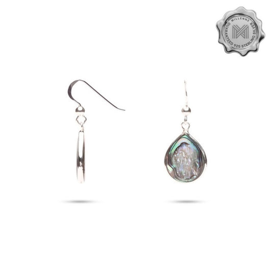 MILLENNE Multifaceted Abalone Shell Pear Shape Silver Hook Earrings with 925 Sterling Silver