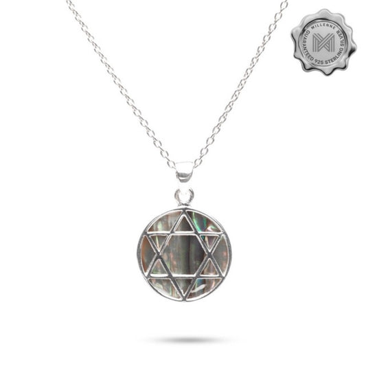 MILLENNE Multifaceted Abalone Shell Star Of David Silver Pendant with 925 Sterling Silver