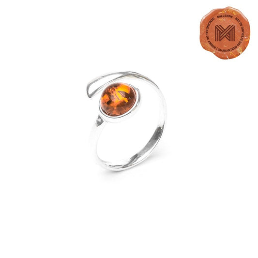 MILLENNE Multifaceted Baltic Amber Bezel Set Huggie Wrap Silver Ring with 925 Sterling Silver