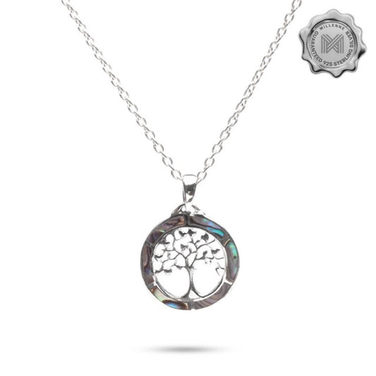 MILLENNE Multifaceted Abalone Shell Tree of Life Shell White Gold Pendant with 925 Sterling Silver