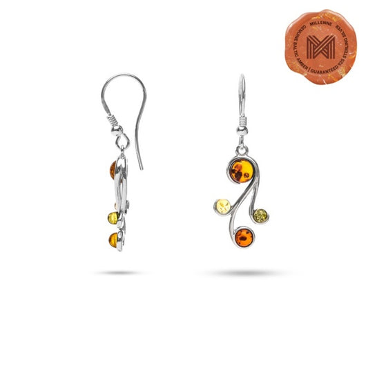 MILLENNE Multifaceted Baltic Amber Curvaceous Silver Dangle Earrings with 925 Sterling Silver