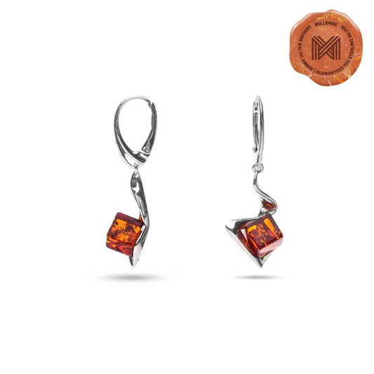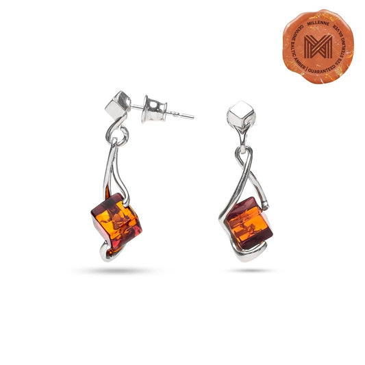 MILLENNE Multifaceted Baltic Amber Cube Silver Earrings with 925 Sterling Silver