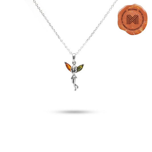 MILLENNE Multifaceted Baltic Amber Dancing Fairy Silver Pendant with 925 Sterling Silver