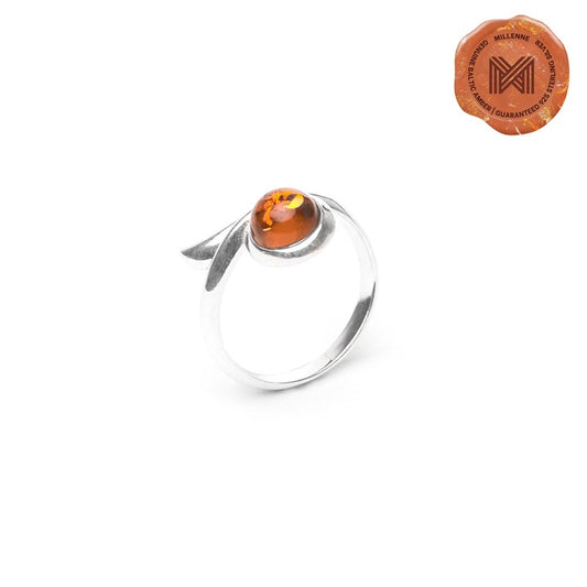 MILLENNE Multifaceted Baltic Amber Branching Leaves Silver Ring with 925 Sterling Silver