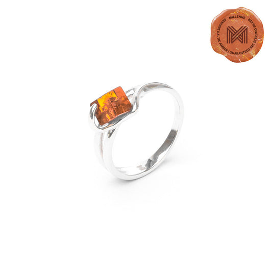 MILLENNE Multifaceted Baltic Amber Cube Silver Ring with 925 Sterling Silver