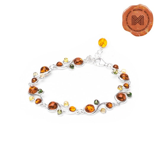 MILLENNE Multifaceted Baltic Amber Curvaceous Silver Bracelet with 925 Sterling Silver