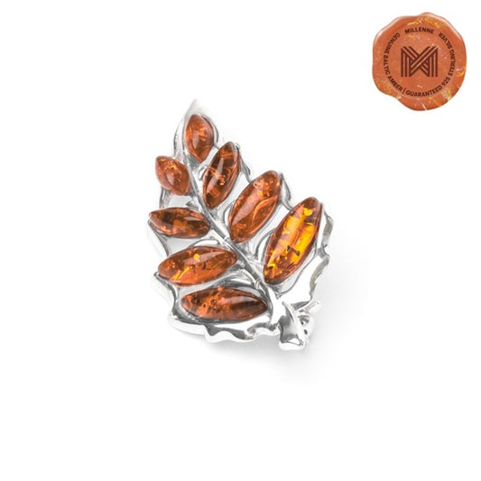 MILLENNE Multifaceted Baltic Amber Fall Leaf Silver Brooch with 925 Sterling Silver