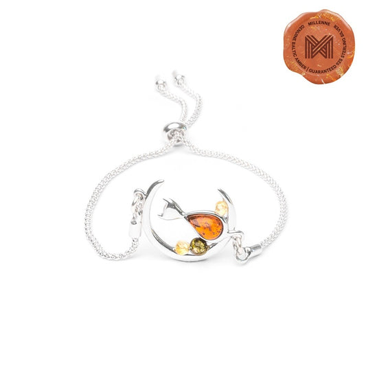 MILLENNE Multifaceted Baltic Amber Fish Underwater Drawstring Silver Bracelet with 925 Sterling Silver
