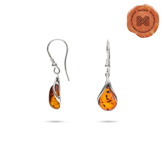 MILLENNE Multifaceted Baltic Amber Droplet Silver Hook Earrings with 925 Sterling Silver