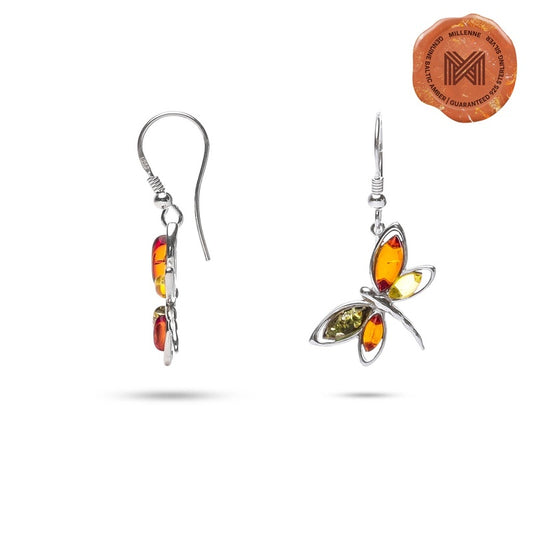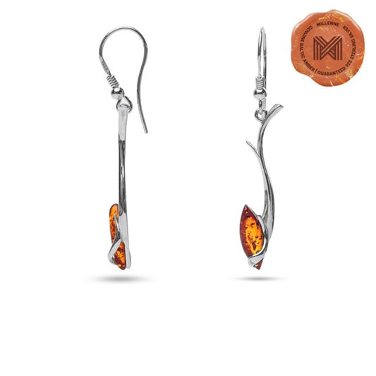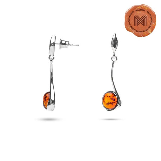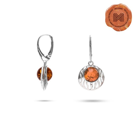 MILLENNE Multifaceted Baltic Amber Fairy Silver Earrings with 925 Sterling Silver