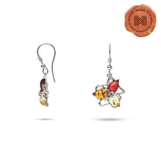 MILLENNE Multifaceted Baltic Amber Tristone Silver Earrings with 925 Sterling Silver