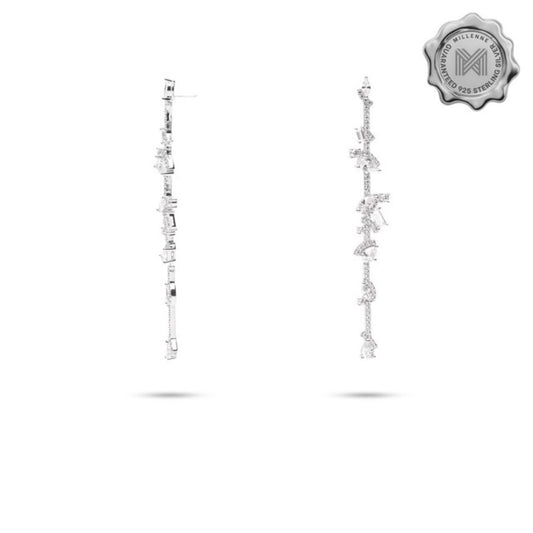 MILLENNE Made For The Night Scattered Diamond Cubic Zirconia Rhodium Drop Earrings with 925 Sterling Silver