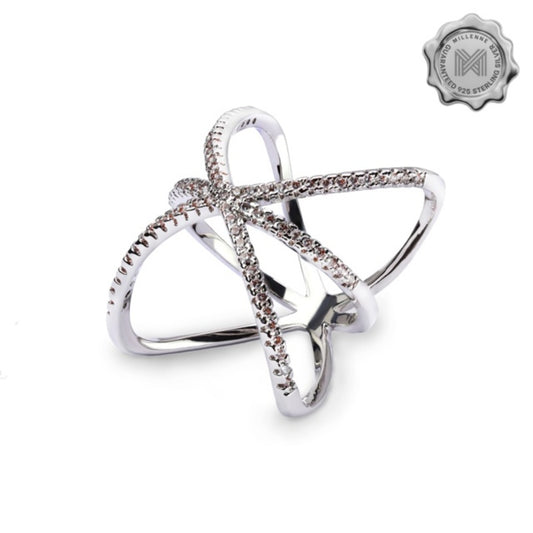 MILLENNE Made For The Night Long Curved Cubic Zirconia Rhodium Ring with 925 Sterling Silver