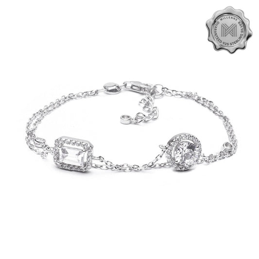 MILLENNE Made For The Night Round and Emerald Shape Cubic Zirconia Silver Bracelet with 925 Sterling Silver