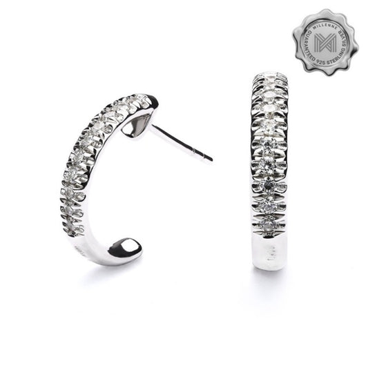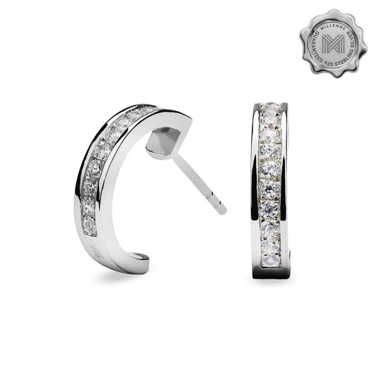 MILLENNE Made For The Night Mini Studded Half Cubic Zirconia White Gold Hoop Earrings with 925 Sterling Silver