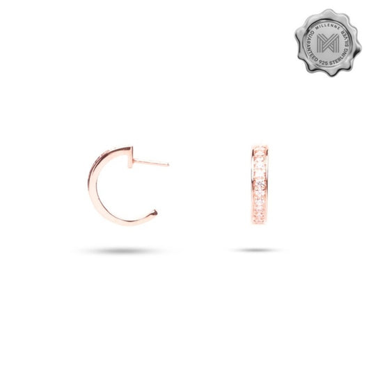 MILLENNE Made For The Night Mini Bezzeled Half Cubic Zirconia Rose Gold Hoop Earrings with 925 Sterling Silver