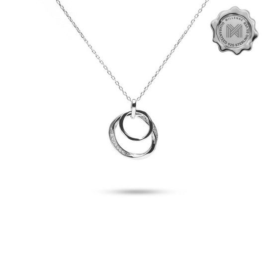 MILLENNE Made For The Night Oribtal Cubic Zirconia Rhodium Necklace with 925 Sterling Silver