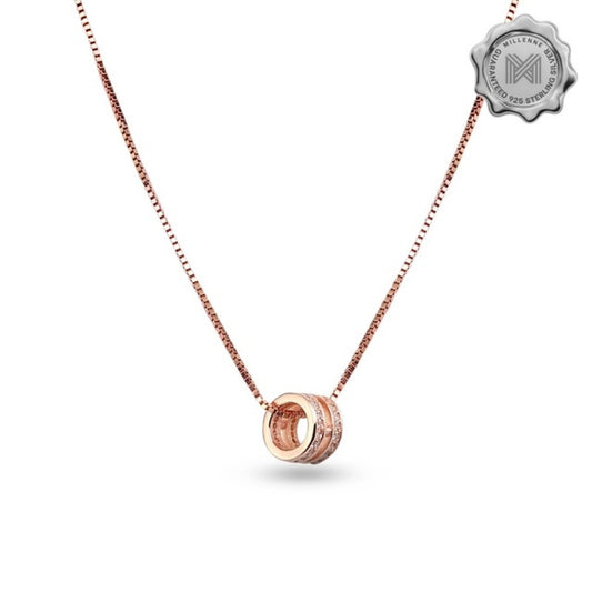 MILLENNE Made For The Night Orbital Cubic Zirconia Rose Gold Necklace with 925 Sterling Silver