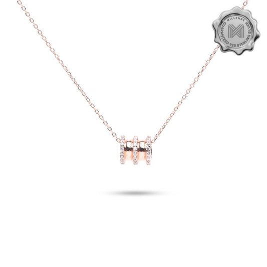MILLENNE Made For The Night Revolve Studded Cubic Zirconia Rose Gold Necklace with 925 Sterling Silver