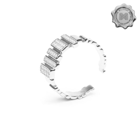 MILLENNE Made For The Night Wavy Bars Studded Cubic Zirconia White Gold Adjustable Ring with 925 Sterling Silver