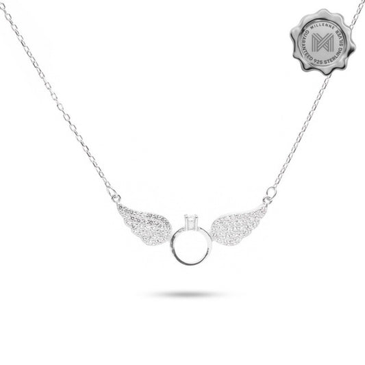 MILLENNE Millennia 2000 Angel Wings Cubic Zirconia Silver Necklace with 925 Sterling Silver