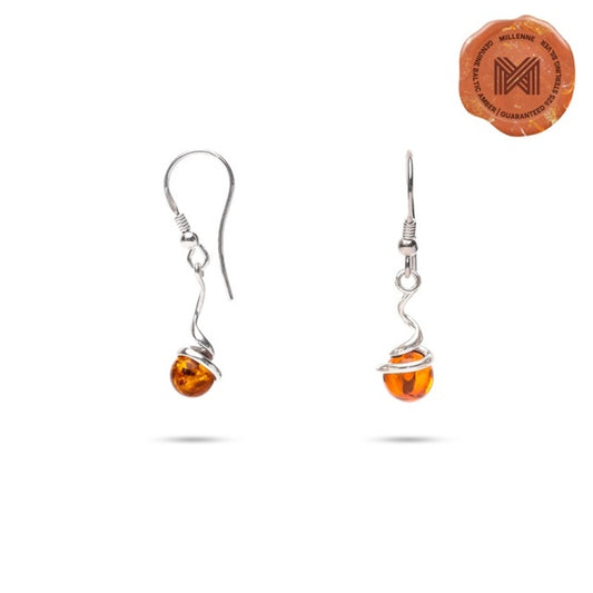 MILLENNE Multifaceted Baltic Amber Mystique Drop Silver Hook Earrings with 925 Sterling Silver