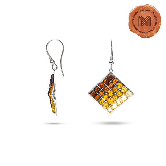 MILLENNE Multifaceted Baltic Amber Square Ombré Silver Hook Earrings with 925 Sterling Silver